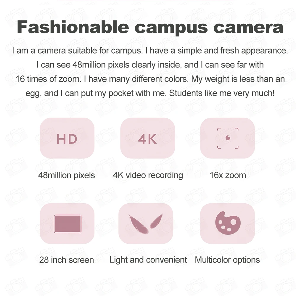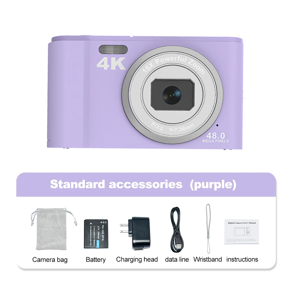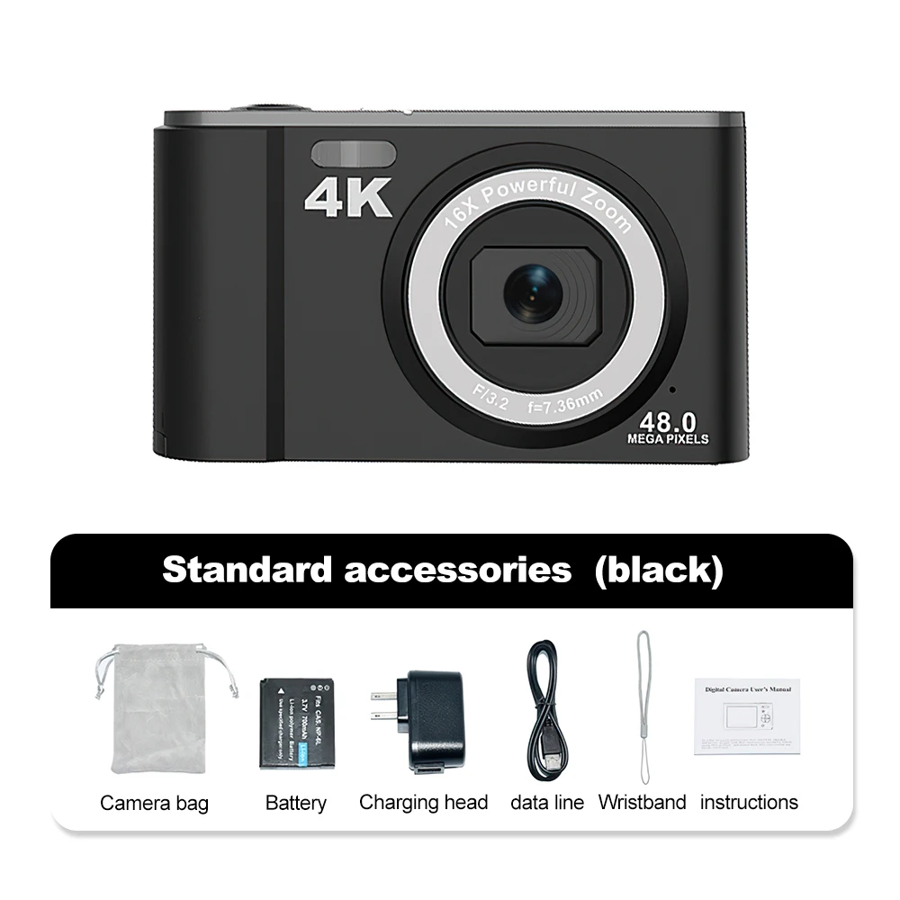 Travor 4K Digital Camera 48MP 16X Zoom Auto Focus 2.8 inch IPS Screen Anti-shaking Built-in Batteries Digital Cameras